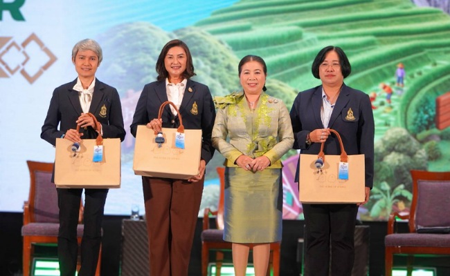 “ปัจจุบัน สํานักงาน กปร. มีนโยบายที่สําคัญคือ ผลผลิตทางการเกษตรมีคุณภาพได้มาตรฐาน GAP และได้รับการรับรองมาตรฐานผลิตภัณฑ์จากสำนักงานคณะกรรมการอาหารและยา (อย.) ซึ่งศูนย์ศึกษาการพัฒนาภูพานอันเนื่องมาจากพระราชดำริ ได้นำมาดำเนินการอย่างต่อเนื่อง และได้รับโล่รางวัล อย.ควอลิตี้ อวอร์ด ประจำปี 2568 จำนวน 2 รางวัล ได้แก่ รางวัลสถานประกอบการดีเด่นด้านผลิตภัณฑ์สุขภาพชุมชน และรางวัลผลิตภัณฑ์สุขภาพดีเด่น ประเภทส่งเสริมเศรษฐกิจฐานราก ที่สำคัญศูนย์ศึกษาการพัฒนาภูพานฯ มีโรงงานแปรรูปผลผลิตของศูนย์และเกษตรกรขยายผล มีทั้งผลิตภัณฑ์เพื่อการบริโภคและใช้สอยหลายรายการ และจะเดินหน้าพัฒนาทั้งการขยายผลองค์ความรู้ การผลิตและการแปรรูปผลิตภัณฑ์ที่ได้มาตรฐานอย่างต่อเนื่องต่อไป “นายสรรัตน์ ปวริญญานนท์ กล่าว