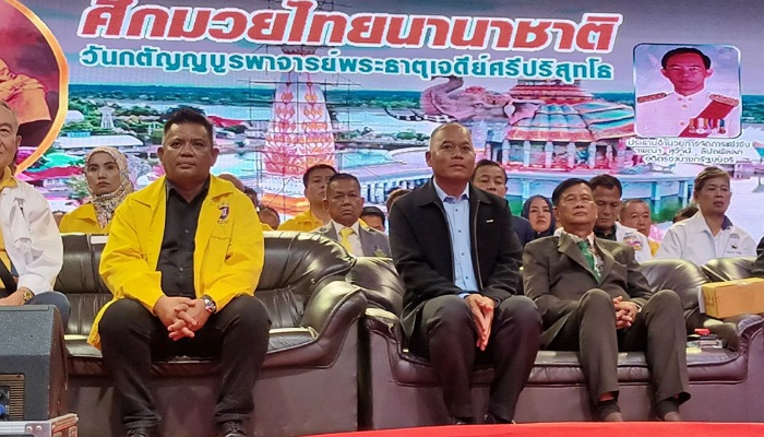 วันที่ 4 ต.ค.68 ที่เวทีมวยชั่วคราววัดบ้านไร่ อ.ด่านขุนทด จ.นครราชสีมา เหล่าศิษยานุศิษย์จากทั่วประเทศหลั่งไหลเข้ามาร่วมงานบุญเนื่องในวันคล้ายวันเกิดหลวงพ่อคูณ ปริสุทโธ ซึ่งหนึ่งในกิจกรรมที่จัดขึ้นคือศึกมวยไทยนานาชาติ”วันกตัญญูบูรพาจารย์พระธาตุเจดีย์ศรีปริสุทโธ” จัดโดยโปรโมเตอร์ยอดเยี่ยม 3 สถาบันมวยโลก “เสี่ยโก้” ก่อเกียรติ พาณิชยารมณ์ แห่ง”ก่อเกียรติกรุ๊ป” ที่ยังคงได้รับความไว้วางใจเจ้าสินค้าแบรนด์ดังต่างๆมากมายทั่วประเทศให้การสนับสนุนการกลับมาจัดแข่งขันมวยอีกครั้งในรอบหลายปี เพื่อผลักดันนักชกไทยสู่เวทีมวยโลกต่อไปเหมือนที่เคยสร้างแชมป์โลกมวยสากลมาแล้วมากมาย ซึ่ง”เสี่ยโก้”ก็ถือเป็นลูกศิษย์คนสำคัญของหลวงพ่อคูณ ปริสุทโธ จึงขอร่วมแสดงความกตัญญูด้วยการนำคู่มวยนานาชาติมาจัดแข่งขันพร้อมชิงเข็มขัด 5 เส้นพร้อมถ่ายทอดสดทั่วประเทศผ่าน ททบ 5 โดยมีพลโทปิยพณฑ์ ฐิตวัฒนานนท์ แม่ทัพน้อยที่ 2 ให้เกียรติเป็นประธานร่วมด้วยนายทวัฒน์ชัย แสนประสิทธ์ (กำนันป่อง) ประธานชมรมกำนันผู้ใหญ่บ้านอำเภอด่านขุนทดและผู้สนับสนุนอีกมากมาย โดยมีผลการชกคู่ชิงแชมป์ 5 คู่ดังนี้