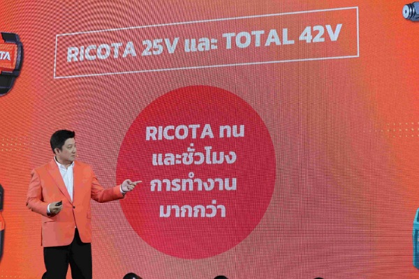 บริษัท กิจเสรีอินเตอร์เทรดดิ้ง จำกัด เปิดตัวสินค้าแบรนด์ใหม่ “RICOTA” 25V (ลิโคต้า) ภายในงาน ”Ricota For Professionals” เครื่องมือช่างไร้สาย 25 โวลต์ นำเข้าจากประเทศจีน สินค้าระดับพรีเมียม พร้อมบุกตลาดกลุ่มงานช่างมืออาชีพ ผ่านช่องทางดีลเลอร์ทั่วประเทศกว่า 1,000 ราย ร้าน “TOTAL SHOP” ของกิจเสรี ทั้ง 40 แห่ง และช่องทางแพล็ตฟอร์มออนไลน์ต่างๆ มั่นใจในสินค้าคุณภาพตอบโจทย์ทุกเซกเม้นต์