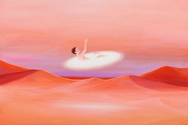 POWER OF HOPE (2563) โดย ก้องกาน – กันตภณ เมธีกุล : บันทึกความรู้สึกในช่วงโควิด-19 ผ่านภาพทะเลทรายสีชมพูอันเป็นสัญลักษณ์ของความหวัง และ ‘ประตูมิติ’ ที่เป็นลายเซ็นของศิลปิน ผลงานชิ้นนี้เปลี่ยนภาพความยากลำบากให้กลายเป็นพลังเชิงบวกตามชื่อ ราคาเริ่มต้น 600,000 บาท