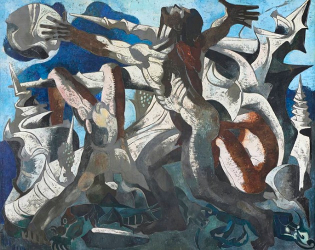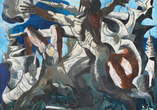 UNTITLED (2511) โดย ถวัลย์ ดัชนี : ผลงานขนาดมหึมาสร้างสรรค์ขึ้นในยุคที่ศิลปินเพิ่งเรียนจบกลับมาจากต่างประเทศ ได้หลอมรวมอิทธิพลตะวันตกเข้ากับปรัชญาตะวันออก จนเกิดเป็นภาษาทางศิลปะที่ทรงพลังและเป็นเอกลักษณ์ ภาพชายผู้หลุดพ้นจากเปลือกดั่งผู้ตื่นรู้ ขณะที่อีกร่างหนึ่งยังคงติดอยู่ภายใน (Private Sale)