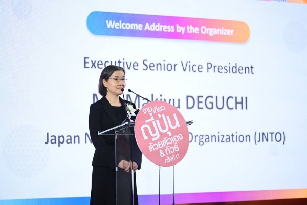 นางเดงุจิ มาคิยู รองประธานกรรมการบริหารอาวุโส องค์การส่งเสริมการท่องเที่ยวแห่งประเทศญี่ปุ่น (JNTO) ได้กล่าวเปิดงานว่า “ขอขอบคุณพันธมิตรจากทั้งประเทศไทยและญี่ปุ่นที่ได้ร่วมแรงร่วมใจกันอย่างยาวนาน ส่งผลให้นักท่องเที่ยวชาวไทยจำนวนมากได้เดินทางไปเยือนประเทศญี่ปุ่น เราหวังว่างานนี้จะทำให้ท่านได้ค้นพบ ‘ญี่ปุ่นมุมใหม่’ ของภูมิภาคต่างๆ และขอเชิญชวนให้ทุกท่านเดินทางไปเยือนญี่ปุ่น”
