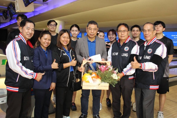 จากนั้นได้เดินทางไปที่ บลูโอ ริธึม แอนด์ โบว์ล เมเจอร์ รัชโยธิน เยี่ยมชมการฝึกซ้อมของนักกีฬาโบว์ลิ่งทีมชาติไทย โดยมี วิวัฒน์ชัย รัตนะรัต ผู้จัดการทีมและ อุปนายกสมาคมกีฬาโบว์ลิ่งแห่งประเทศไทย, วีรยุทธ จอมใจเหล็ก กรรมการบริหารสมาคมกีฬาโบว์ลิ่งแห่งประเทศไทย, โค้ชคิม อุย ยัง ผู้ฝึกสอนชาวเกาหลีใต้, บดินทร์ เลิศพิริยะสกุลกิจ ผู้ฝึกสอน, สุรศักดิ์ มานุวงศ์ ผู้ฝึกสอน และนักกีฬาโบว์ลิ่งทีมชาติไทย ชาย 4 คน หญิง 4 คนให้การต้อนรับ
