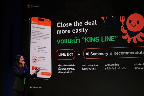 รางวัลชนะเลิศ ได้แก่ทีม “วันนี้พวกเราจะกินอะไร” จากผลงาน ‘KINS LINE’ โซลูชันช่วยแก้ปัญหาอมตะของทุกกลุ่มเพื่อนอย่าง “วันนี้จะกินอะไร?” ด้วย LINE MINI App ที่พร้อมให้สมาชิกใส่ความต้องการของแต่ละคนได้ จากนั้น ใช้ AI ช่วยสรุปความคิดเห็น และวิเคราะห์นำเสนอลิสต์ร้านที่ตรงใจด้วยข้อมูลร้านผ่าน Google API แจ้งเตือนกลับในกลุ่มแชต LINE ให้สมาชิกโหวตภายในเวลาที่กำหนดไว้ พร้อมสรุปผลให้ครบจบดีลโดยอัตโนมัติ ทุกขั้นตอนเป็นไปอย่างรวดเร็วและโปร่งใส สมาชิกสามารถรีวิวร้านก่อนตัดสินใจ ทำให้หาข้อสรุปร่วมกันได้ภายในไม่กี่นาที