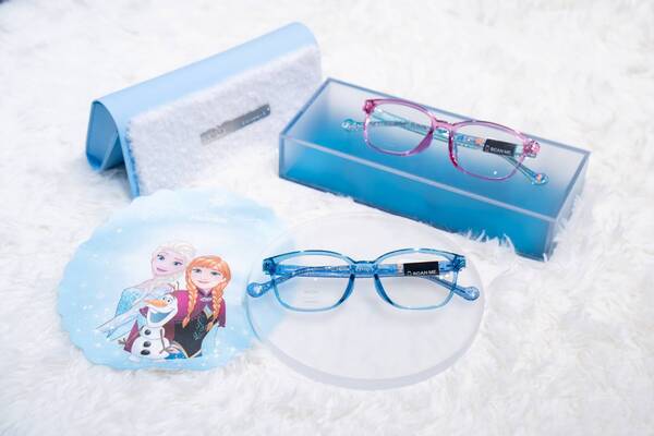 • รุ่นเด็ก ออกแบบด้วยดีเทลเกล็ดหิมะและประกายแวววาวดุจหิมะโปรย สื่อถึงธีม “Queen of All Ages” ที่เฉลิมฉลองพลังและความงดงามของผู้หญิงทุกช่วงวัย ได้แก่ รุ่น Sister queens model กรอบแว่นเด็กทรงเหลี่ยม ทำจากวัสดุ TR90 อ่อนโยนต่อผิว น้ำหนักเบา ไม่กดทับจมูก และ Winter magic model น่ารักสดใสด้วยกรอบแว่นเด็กทรง Boston มาพร้อมกล่องใส่แว่นแบบนุ่มดีไซน์น่ารักในโทนสีฟ้า อ่อนละมุน ด้านหลังตกแต่งลวดลาย Olaf ท่ามกลางหิมะ พร้อมผ้าเช็ดแว่นทรงเกล็ดหิมะ ลาย Elsa และ Anna