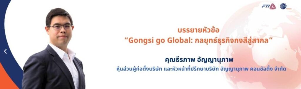 หนึ่งในนั้น นายธีรภาพ อัญญานุภาพ หุ้นส่วนผู้จัดการ และหัวหน้าทีมที่ปรึกษาบริษัท อัญญานุภาพ คอนซัลติ้ง จำกัด (Aunyanuphap Consulting) บริษัทที่ปรึกษาธุรกิจครอบครัว ที่ได้ให้คำปรึกษามามากกว่า 50 กิจการ ได้บรรยายภายใต้แนวคิด “Gongsi go Global” หรือ “กลยุทธ์กงสีสู่สากล” ซึ่งเป็นแนวทางสำหรับธุรกิจครอบครัวในการผ่าวิกฤตเศรษฐกิจเพื่อการเติบโตอย่างมั่งคั่งและยั่งยืน และการปรับตัวภายในองค์กรภายใต้เศรษฐกิจที่ผันผวน