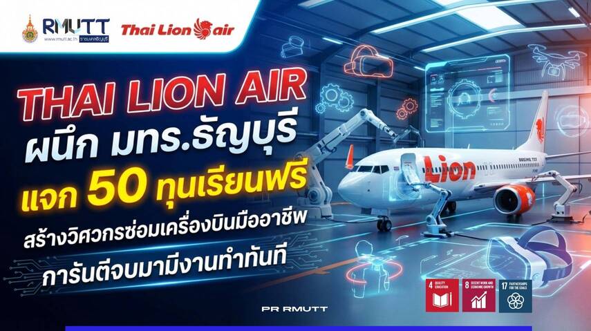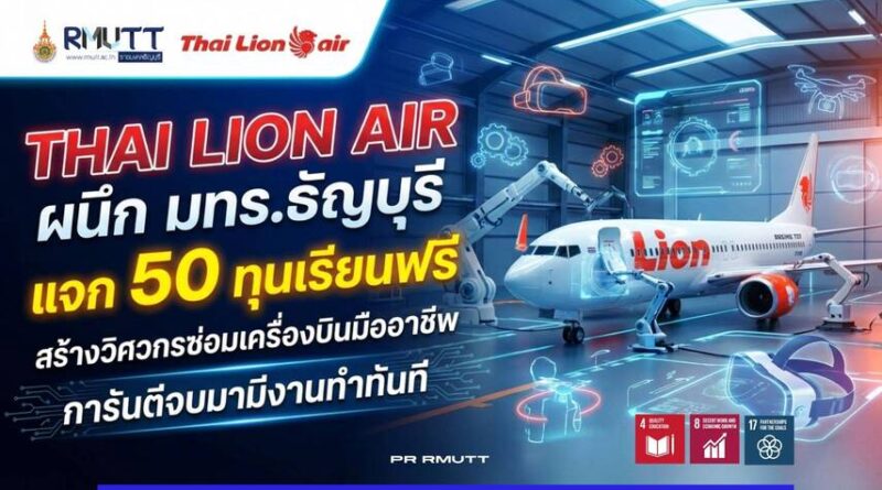 ไทยไลอ้อนแอร์ ผนึก มทร.ธัญบุรี แจก 50 ทุนเรียนฟรีสร้างวิศวกรซ่อมเครื่องบินมืออาชีพ การันตีจบมามีงานทำทันที