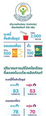 จากการเปิดเวทีเสวนา “ภาษีโซเดียม”ในการจัดเสวนาหนุนมาตรการเชิงระบบช่วยคนไทย โดยการบริโภคอาหารที่มีปริมาณโซเดียมสูงเป็นสาเหตุให้เกิดภาวะความดันโลหิตสูงและเพิ่มความเสี่ยงต่อการเกิดโรคหัวใจและหลอดเลือดและโรคไตเรื้อรังได้ ซึ่งปัจจุบันแนวโน้มการบริโภคโซเดียมโดยเฉลี่ยของคนไทยเพิ่มขึ้นร้อยละ 12 จาก 3,264 มิลลิกรัม (มก.)/วัน ซึ่งจากการสำรวจสถานการณ์การบริโภคอาหาร ความมั่นคงทางอาหารและความรอบรู้ด้านอาหารของประชาชนไทยพบว่าคนไทยอายุ 20 ปีขึ้นไป บริโภคบะหมี่กึ่งสำเร็จรูปโดยเฉลี่ย 22 กรัม/วัน และ14 กรัม/วัน ในเพศชายและเพศหญิง ขณะที่มีการบริโภคขนมขบเคี้ยว โดยเฉลี่ย 32 กรัม/วัน และ29 กรัม/วัน ในเพศชายและเพศหญิง ทำให้การคาดการณ์จัดเก็บภาษีตามปริมาณโซเดียมใน 10 ปีแรก จะสามารถป้องกันการเกิดโรคกับผู้ป่วยรายใหม่ของโรคหัวใจและหลอดเลือดและโรคไต คาดว่าป้องกันได้ประมาณ155,000 (132,455-176,859) ราย หากดำเนินการจัดเก็บภาษีตามปริมาณโซเดียมทั้งในบะหมี่กึ่งสำเร็จรูปและขนมขบเคี้ยวใน 10 ปีแรกต่อจากนี้ จะป้องกันโรคหลอดเลือดสมองได้มากที่สุดในเพศชายจำนวน 33,673 (23,347-43,954) ราย รองลงมาคือโรคหลอดเลือดสมองในเพศหญิง จำนวน 20,772 (14,821-27,039) ราย (ข้อมูลจาก ดร.พจนา หันจางสิทธิ์ สถาบันวิจัยประชากรและสังคม มหาวิทยาลัยมหิดล)