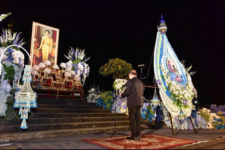 จากนั้นเป็น การบรรเลงวงดนตรีสากลในบทเพลงพระราชนิพนธ์ อันทรงคุณค่า โดยคณะศิลปกรรมศาสตร์ เพื่อร่วมน้อมรำลึกในพระอัจฉริยภาพ และพระมหากรุณาธิคุณผ่านท่วงทำนองแห่งเสียงดนตรี พร้อมด้วยการสร้างประวัติศาสตร์ความอาลัยผ่าน การกล่าวสุนทรพจน์ 4 ภาษา ประกอบด้วยภาษาจีน ภาษาญี่ปุ่น ภาษาอังกฤษ และภาษาไทย ตามลำดับ โดยคณะศิลปศาสตร์ เพื่อประกาศพระเกียรติคุณให้ขจรขจายสู่สากล กระทั่งเข้าสู่ช่วงพิธีการหลักในเวลา 19.10 น. รศ.ดร.สมหมาย ผิวสอาด อธิการบดี มทร.ธัญบุรี เป็นประธานกล่าวสำนึกในพระมหากรุณาธิคุณและประกอบพิธีวางพวงมาลา “บุปผชาติ พิไลน้อมถวายพระพันปี”