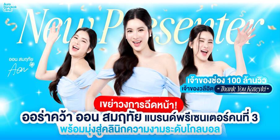 Aura Bangkok Clinic คลินิกความงามตัวแม่ พึ่งเปิดตัวสาขาต่างจังหวัดสาขาแรกที่จังหวัดอุดรธานีได้ไม่นาน ล่าสุดประกาศข่าวใหญ่ เปิดตัวพรีเซนเตอร์คนที่ 3 ออน สมฤทัย รัตนวราหะ เจ้าของคลิปร้อยล้านวิว และเจ้าของวลีฮิต Thank you Kateyki ที่เหล่าคนดังอย่าง ลิซ่า แบมแบม และคนดังแถวหน้าโคฟเวอร์ตามกันทั่วเมือง งานนี้ออร่าทุ่มงบกว่า 7 หลัก เปิดตัวคุณออนอย่างยิ่งใหญ่ ภายใต้คอนเซปท์สวยลัคชู ออร่าแบบออน เตรียมเขย่าวงการฉีดหน้าสวยหุ่นสับ ประกาศดันตลาดระดับโกลบอล ด้วยพรีเซนเตอร์ใหม่ บริการใหม่ และกลยุทธ์ใหม่ที่ไม่เคยมีมาก่อน