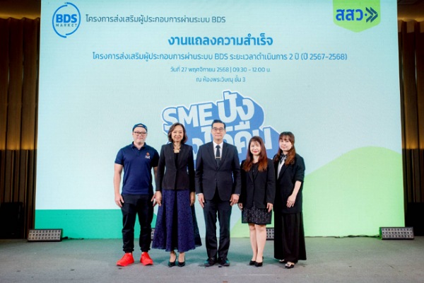 สำนักงานส่งเสริมวิสาหกิจขนาดกลางและขนาดย่อม (สสว.) จัดงานแถลงข่าวความสำเร็จของโครงการส่งเสริมผู้ประกอบการผ่านระบบ Business Development Service (BDS) หรือ “SME ปัง ตังได้คืน” ซึ่งเป็นกลไกสำคัญที่ช่วยลดต้นทุนธุรกิจและเพิ่มขีดความสามารถให้ SME ไทยท่ามกลางสถานการณ์ทางเศรษฐกิจที่ผันผวน สามารถสร้างมูลค่าเศรษฐกิจกว่า 6,000 ล้านบาท พร้อมเปิดทิศทางแผนงานปี 2569 ตั้งเป้าส่งเสริมผู้ประกอบการเข้าใช้บริการมากกว่า